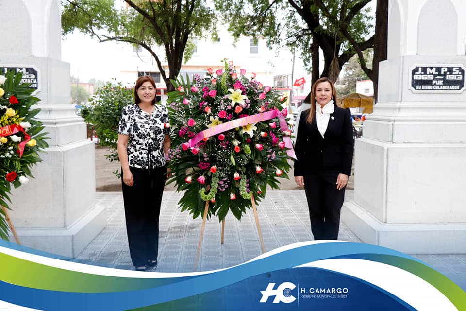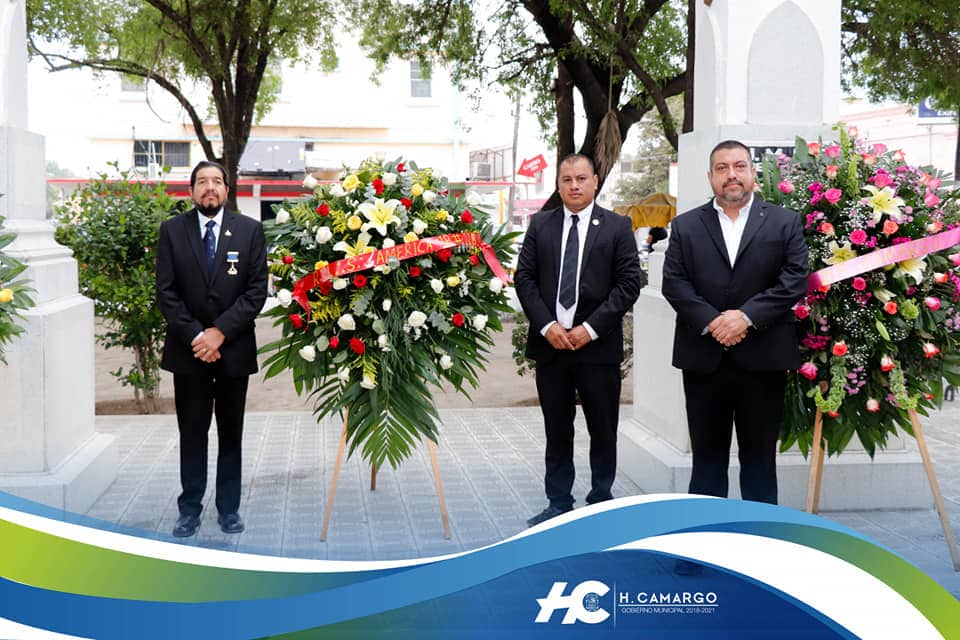 Por primera vez, no hubo acto protocolario en la plaza Juárez, no hubo presentación de autoridades. La jefa del ejecutivo local y los integrantes del H. Cabildo, así como la presidenta del DIF Camargo Maribel Peña Villarreal, la Directora Ana Lilia Salazar Rodríguez y los integrantes de la Logia Simbólica América 18, No. 118 encabezados por el venerable maestro Eduardo Martínez González pasaron a montar las guardias de honor y a colocar las ofrendas florales.