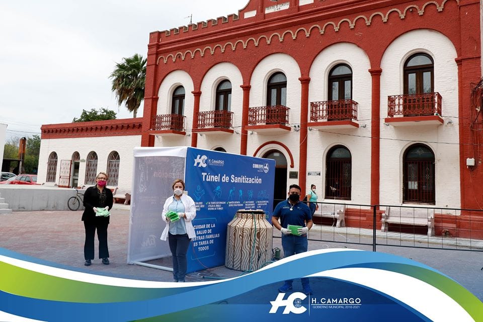 H. CAMARGO, TAM.- Atendiendo las disposiciones de la Secretaria de Salud de Tamaulipas, el Gobierno Municipal que preside la Dra. Leticia Peña Villarreal, procedió la mañana de este martes a la instalación de 2 túneles sanitizadores, que servirán para ayudar a contener la propagación de COVID 19.